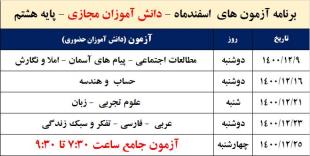 برنامه آزمون اسفندماه پایه هشتم -دانش آموزان مجازی