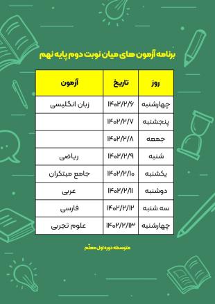 💠 *برنامه آزمون میاننوبت دوم پایه نهم*